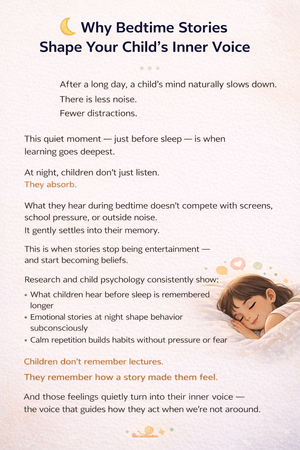 Stories are short, gentle, and designed to spark reflection — not overstimulation.